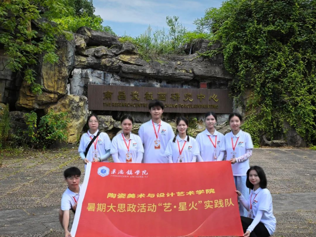 为积极引领广大青年学生在“行走的思政课”中,努力成为有理想、敢担当、能吃苦、肯奋斗的时代新人。近日,景德镇学院“艺·星火”实践队为深入挖掘红色革命文化资源的深厚底蕴,促进陶瓷文化与红色文化的璀璨交融,通过“学、讲、研、践”四个方面开展了以“共寻瓷味思政,携手红脉传承”为主题的暑期大思政实践活动,共同探寻“瓷”韵“山”川。