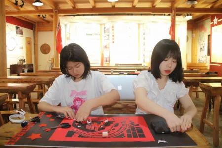 6月26日,”景”青筑梦·艺绘琅溪乡村振兴实践团队在江西省景德镇市浮梁县胡宅村对党史知识及红色文化进行学习,从而完成传统手工艺剪纸与墙绘创作。实践团队通过参观村史馆,红色遗址了解到革命先辈英勇事迹,学习了琅溪红色精神后,团队成员将两者融入到了剪纸艺术、墙绘创作当中,为剪纸、墙绘增添一份独特的色彩,意在以红色主题艺术作品赓续红色血脉,传承红色基因。