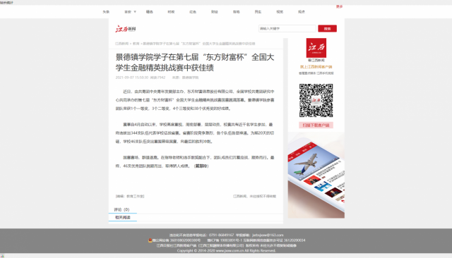 江西新闻:景德镇学院学子在第七届“东方财富杯”全国大学生金融精英挑战赛中获佳绩