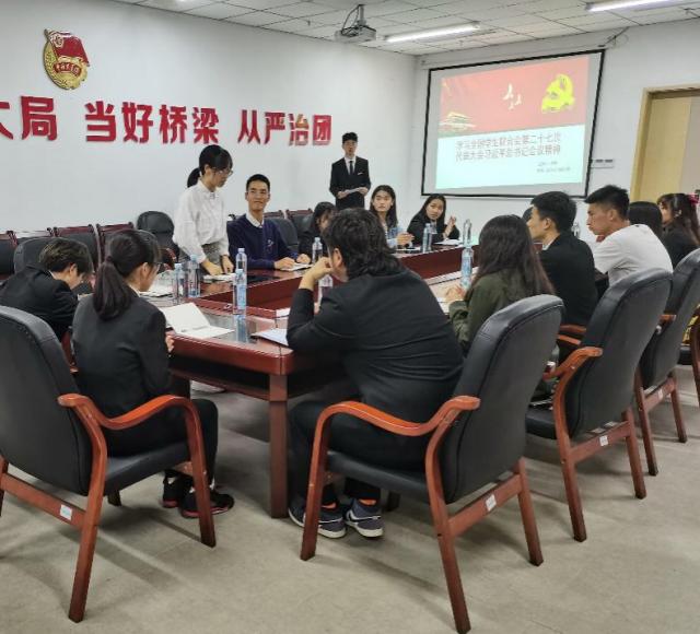 会上,校学生会主席邱繁舒妮向与会人员逐字逐句分析解读了习近平总书记贺信和党中央致词精神以及教育部、团中央相关领导会上讲话精神。他向与会人员传达了全国学联工作报告、《中华全国青年联合会章程》修改情况、《关于学联学生会工作人员改进作风服务同学的若干规定》等内容和精神。