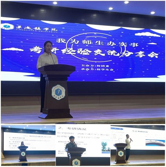 为深入推进党史学习教育走深走实,聚焦青年所需所盼精准发力,开展好“我为师生办实事”实践活动,6月8日晚,由景德镇学院团委主办的2021届毕业生考研经验分享会在图文报告厅举行。