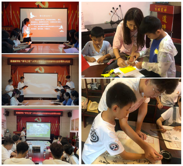 实践服务队成员深入社区带动孩子们积极主动地参与阅读,为孩子“打开一扇阅读的门、开启一生爱的旅程”。以情景在线演绎的方式向孩子们介绍多个年龄段的读物,并通过手工、书法等活动,让孩子们增强阅读的体验感,让他们从阅读中感知快乐,从收获中快乐成长。