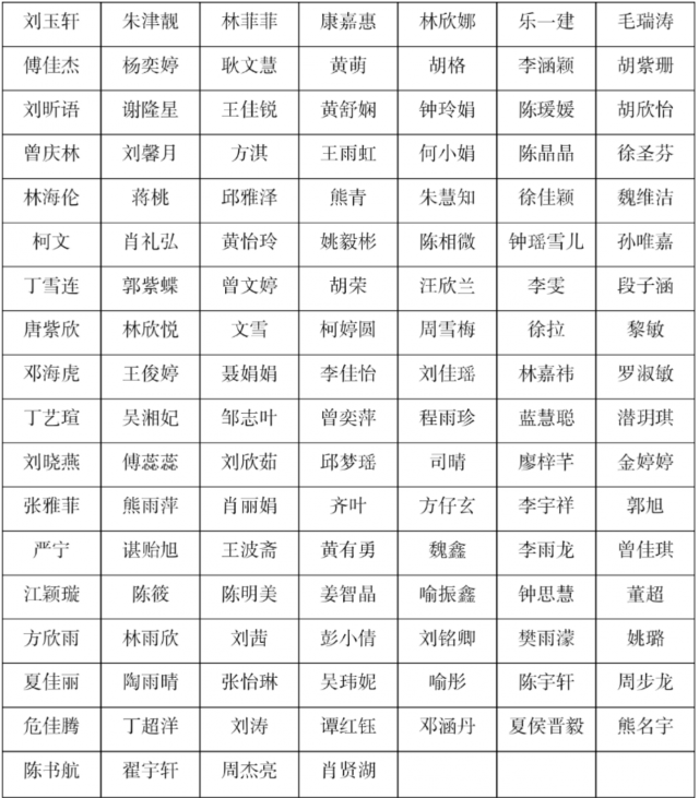 根据《中国共产主义青年团章程》和《中国共产主义青年团发展团员工作细则》相关规定,经个人申请,团支部及二级学院团委推荐,团校培训学习及校团委考察审批,最终决定发展刘玉轩等123名优秀青年学生为中国共产主义青年团团员。现予以公示: