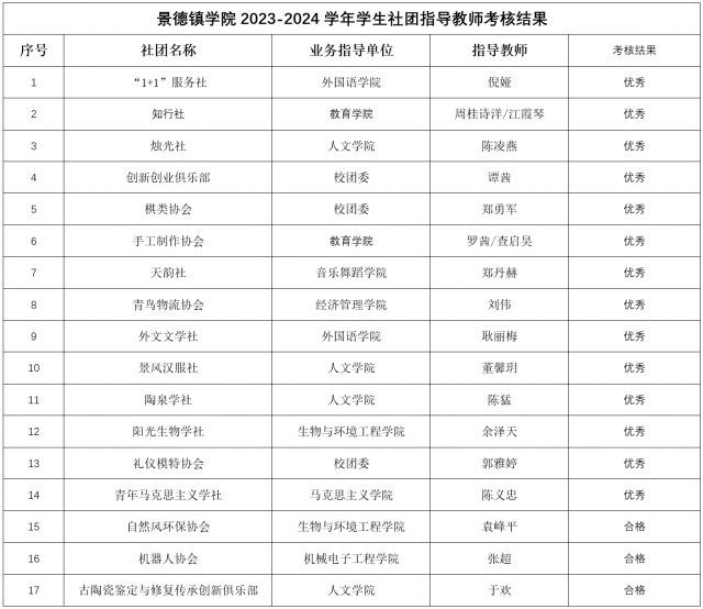 附件:《景德镇学院2023-2024学年学生社团指导教师考核结果》