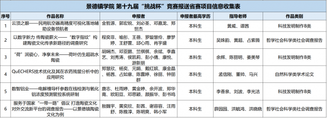 根据第十九届“挑战杯”全国大学生课外学术科技作品竞赛江西赛区比赛的通知要求,学校组织开展了竞赛申报遴选工作,经过项目申报、资料审核、综合评议等环节,拟推荐以下6件项目作品参加省赛,现予以公示。