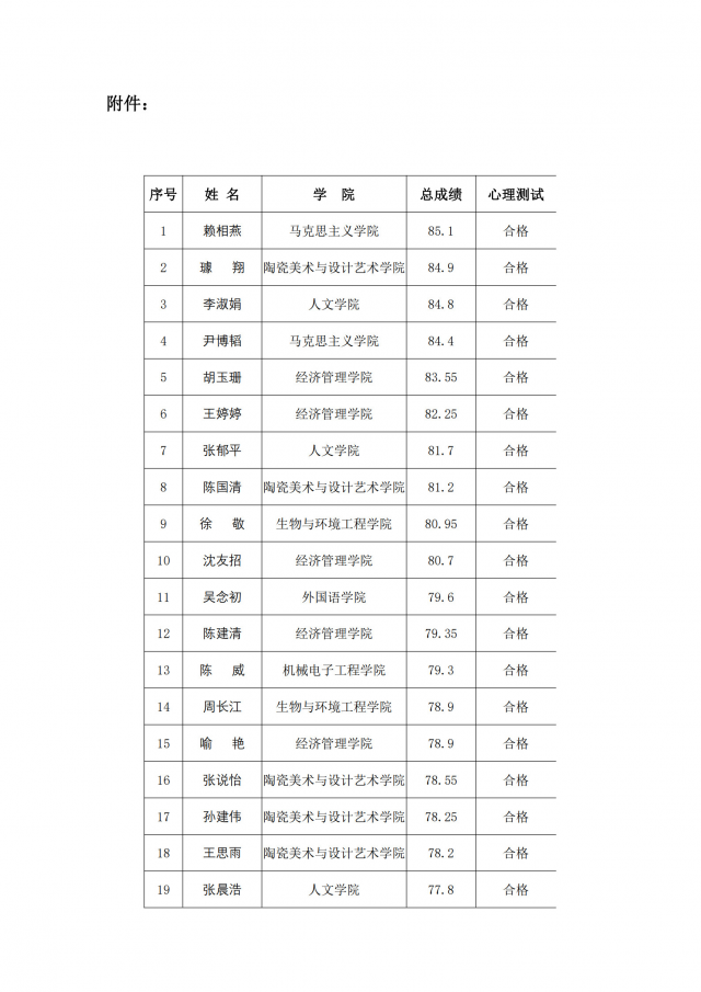 根据江西省大学生志愿服务西部计划项目管理办公室《关于做好2024-2025 年度西部计划志愿者招募派遣工作的通知》要求,我校在公开招募、自愿报名、学院推荐的基础上,严格招募选拔流程,经纪委监督,学工处、教务处、校团委资格审查,笔试(占40%)、面试(占60%)、心理测试环节,现将成绩公示如下(见附件)
