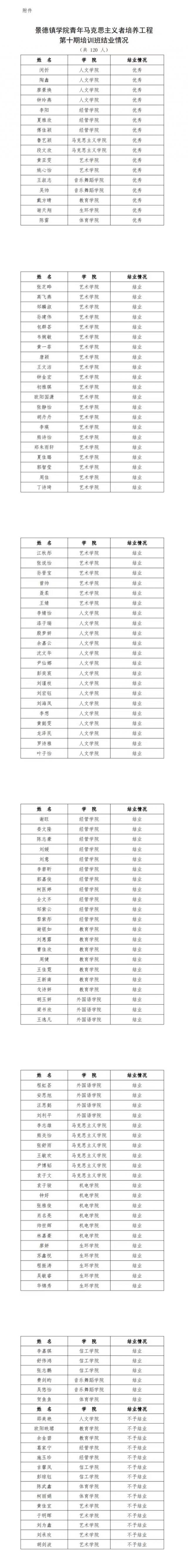 附件:景德镇学院青年马克思主义者培养工程第十期培训班结业情况