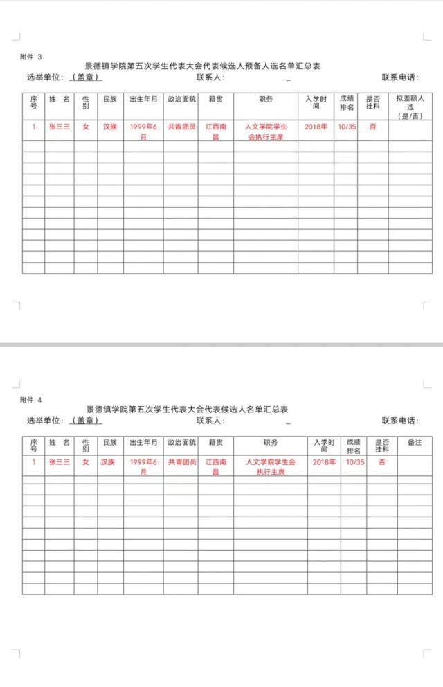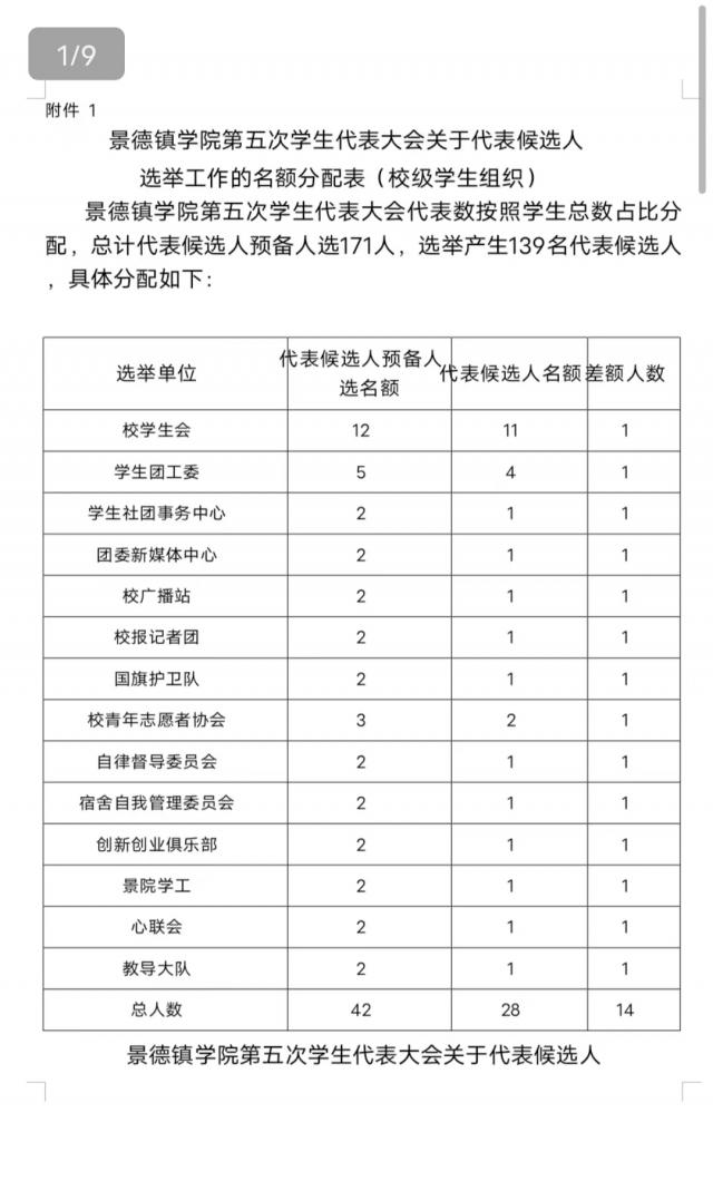 附件:1.景德镇学院第五次学生代表大会关于代表候选人选
