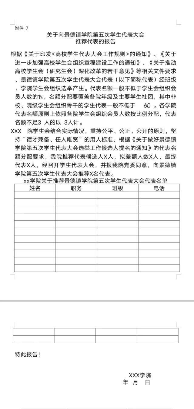 7.关于向景德镇学院第五次学生代表大会推荐代表的报告