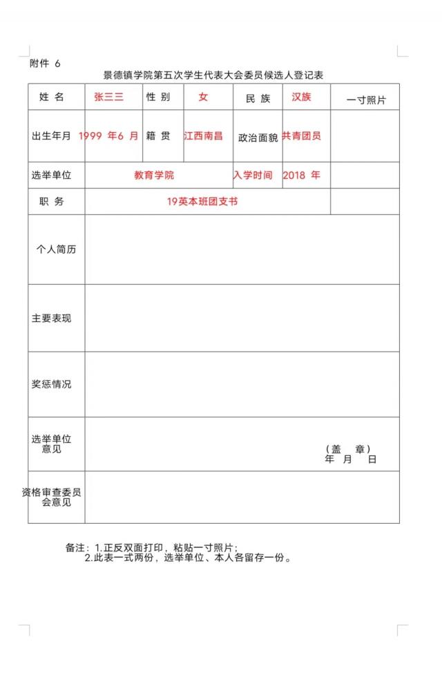 6.景德镇学院第五次学生代表大会委员候选人登记表