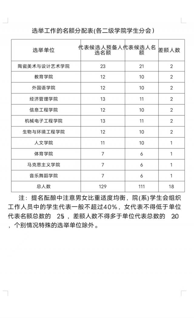 备人选名额分配表3.景德镇学院第五次学生代表大会学生委员会委员候选人预