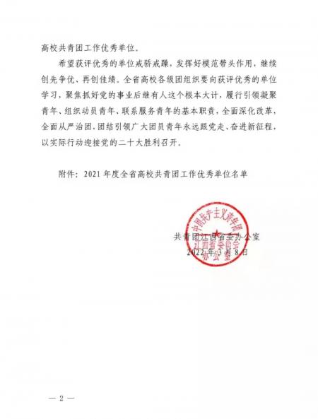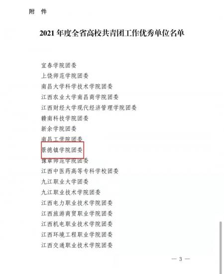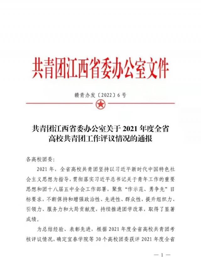 近日,共青团江西省委办公室公布了2021年度全省高校共青团工作优秀单位名单,对在2021年度共青团工作中表现优秀的高校团委进行通报表扬,我校团委位列其中。