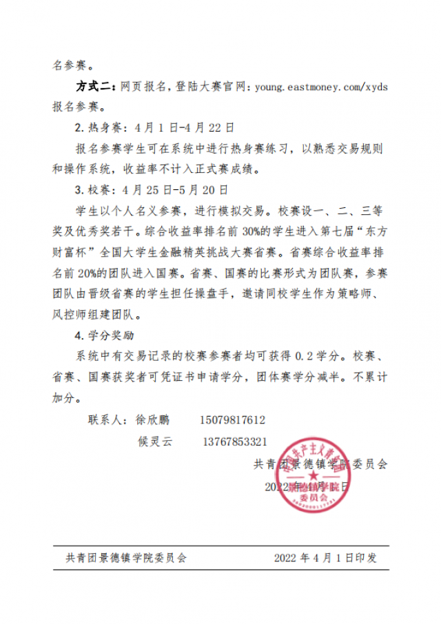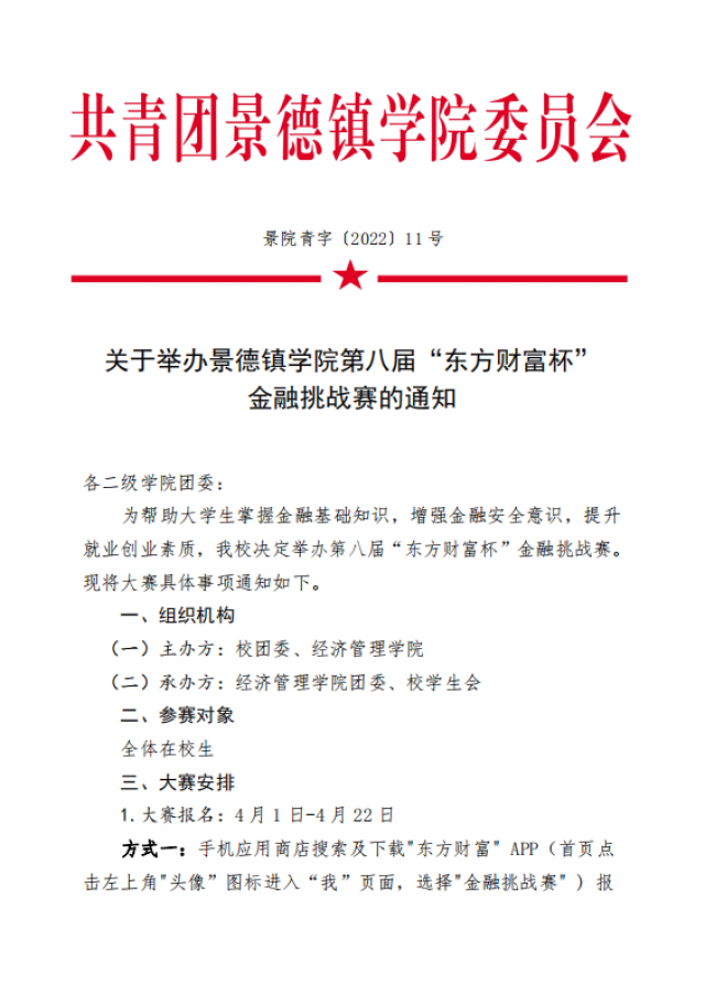 关于举办景德镇学院第八届“东方财富杯” 金融挑战赛的通知