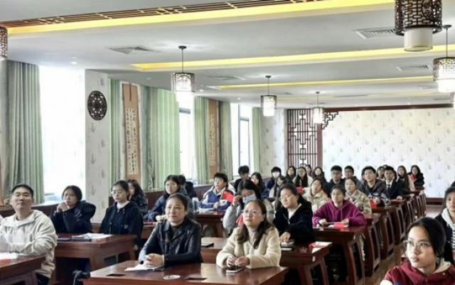 革命历史不容忘,红色精神世代传。活动伊始,全体师生通过红色影片的经典片段集锦,共同回望了新民主主义革命时期那段波澜壮阔的历史画卷。活动中,万文军与同学们进行了温馨而深刻的交流。她勉励教育学院的同学们,要珍惜学习机会,精进专业知识,立志成为培养德智体美劳全面发展的社会主义建设者和接班人的中坚力量。她还鼓励同学们,在未来的教育岗位上,要勇于创新,将思政内容与先进人物的闪光事迹巧妙融合,让红色故事生动鲜活,让英雄形象可亲可敬,成为激励孩子们前行的灯塔。观影结束后,张可与陈悦两位同学上台,以真挚的情感分享了她们内心的触动。她们深情缅怀革命先烈的英勇事迹,对那份“虽千万人吾往矣”的担当精神表达了由衷的敬意,让在场每一个人都深切感受到了革命先辈们那份矢志不渝的理想信念与不屈不挠的奋斗精神。随后,杜佳骏等四位同学饱含深情的朗诵了《我爱你中国》,流露出对祖国深沉的爱恋与无尽的眷恋。在猜红色经典歌曲与大合唱环节,现场热烈氛围到达了顶点。