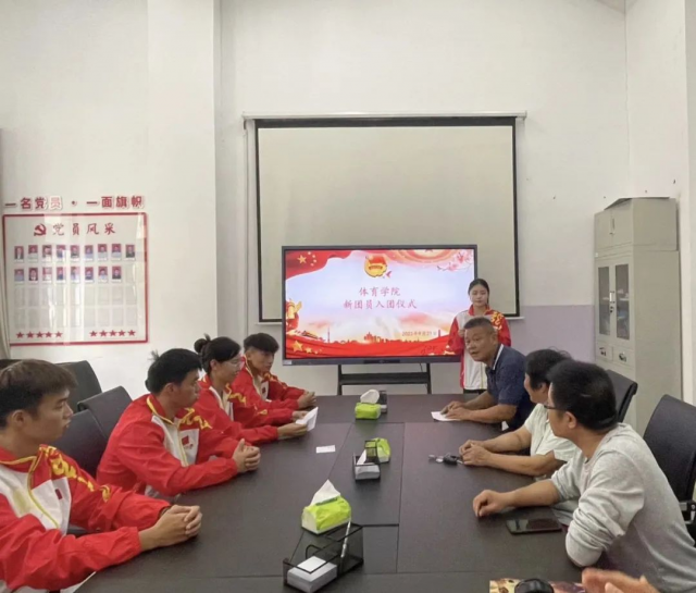 为深入学习宣传贯彻党的二十大精神,厚植青少年爱党、爱国情怀,凝聚青年力量,进一步增强团员的光荣感和使命感。2023年9月21日,在体育学院团委的组织下,景德镇学院体育学院新团员入团仪式在体育学院会议室隆重举行。本次仪式出席的领导有体育学院党委副书记付弟雯、体育学院团委书记文超、体育学院专职辅导员徐罗迪,以及各班团支书参加了入团仪式。本次仪式由姚子婷主持。