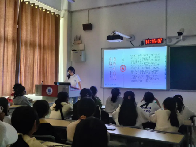 活动伊始,全体同学认真观看了一部短片。在跌宕起伏的音乐中与慷慨激昂的故事里,同学们深刻感受到了时代楷模们的优秀品质和精神风范,在回首过去与展望未来中,团日活动拉开了序幕。在讲解之中,主持人由点到面,向同学们介绍了党的二十大报告。学习过后,同学们对党的二十大精神有了更细致的了解、更全面的认识、更深刻的感受。