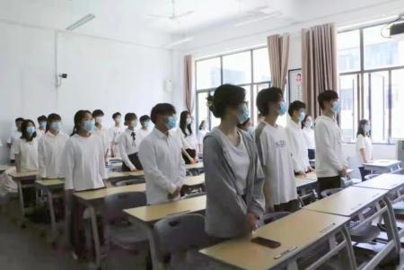 主持人周梦玲宣布入团仪式正式开始,全体奏唱国歌。