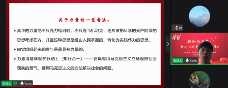 青年是祖国的未来、民族的希望,也是党的未来和希望。为深入学习贯彻习近平总书记关于青年工作的重要论述,团结带领广大团员青年以实际行动迎接党的二十大胜利召开,引领广大青年在学思践悟中奋发有为,7月27日上午,我院学生会在线上开展专题学习会,集体学习习近平同志《论党的青年工作》一书,会议由团委学生兼职副书记袁甲卓同学带领学习。