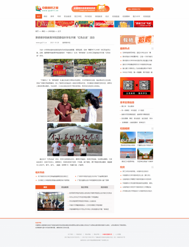 中国高校之窗:景德镇学院教育学院团委组织学生开展“红色走读”活动