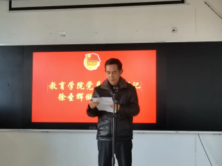 会议进行到尾声,教育学院党总支副书记徐圣辉代表教育学院党总支对新一届的委员们表示祝贺,肯定了过去一年大家为教育学院做出的努力和贡献,并希望继任教院团委负责人的同学们在工作中要全心全意为同学们服务,并且平衡学习与工作的关系,发挥榜样带头作用,带领同学们紧密团结、努力学习,以高要求、严标准投入到下一年的工作中。