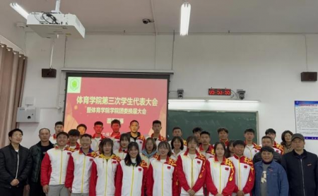 2021年12月10日,体育学院在3301教室召开了第三次学代会暨团委换届大会。体育学院党总支书记董小军、院长胡红梅、党总支副书记付弟雯、办公室主任余洪权、团委书记、学生科科长文超、辅导员徐罗迪以及各班学生代表、团员代表共60余人参加了会议。