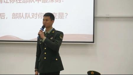 退伍大学生何涛以PPT、视频播放等形式向同学们宣讲参军的意义、征兵入伍的条件、入伍基本流程和大学生参军入伍及退役的优惠政策等,详细分析了高校毕业生应征入伍的优势,引导学生深刻体会参军的意义,极大地激发了同学们应征入伍、献身国防的热情!
