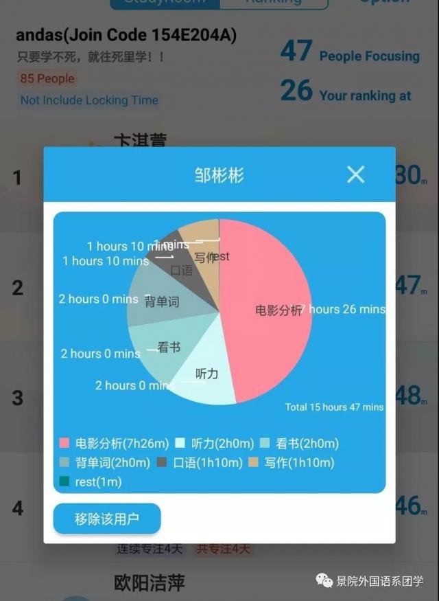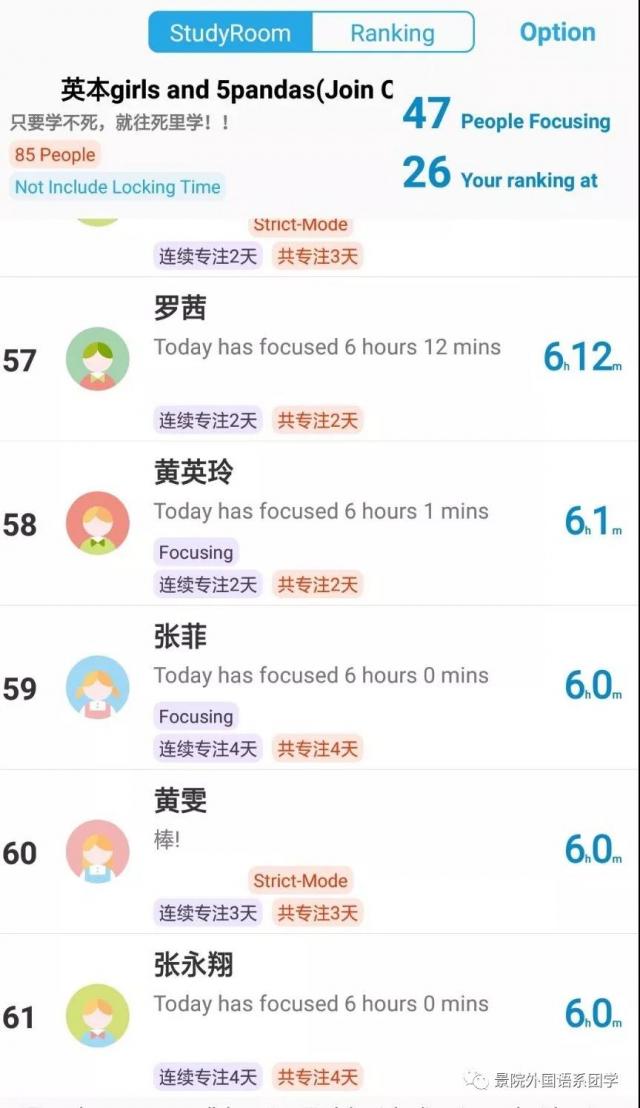 隔离病毒,但不隔离爱,在严峻的疫情面前,外院学子积极行动,主动加入志愿者队伍,向住户居民广泛宣传疫情防护知识及相关政策措施,了解他们在外亲友们的情况,解答相关疑惑,引导群众以积极的心态防控疫情,她们,正在用实际行动为打赢防疫攻坚战奉献青春力量。 人而不学,其犹正墙面而立,假期,正是弯道超车的好机会。因此,19级英语专业的85名同学们在辅导员周庆光的建议下建立了线上自习室,互相监督打卡学习,营造出了良好的学习氛围。独木难成舟,双木方成林,唯有合作,方能共赢,在遇到难题时,同学之间亦会互帮互助,体现出外院学子的团结精神。