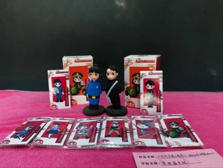 桂佳佳和周卓君形成一个团队,命名为“时光宝盒队”,该团队在此次竞赛中荣获一等奖。在老师金婷和李虹的指导下,她们两人合理分工,默契配合,分别创作出卡通人物形象和设计出盲盒包装,形式新颖独特。