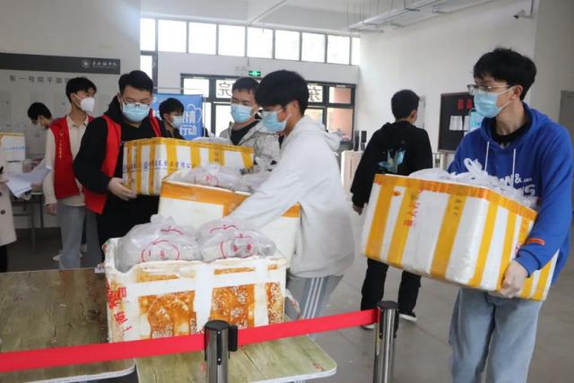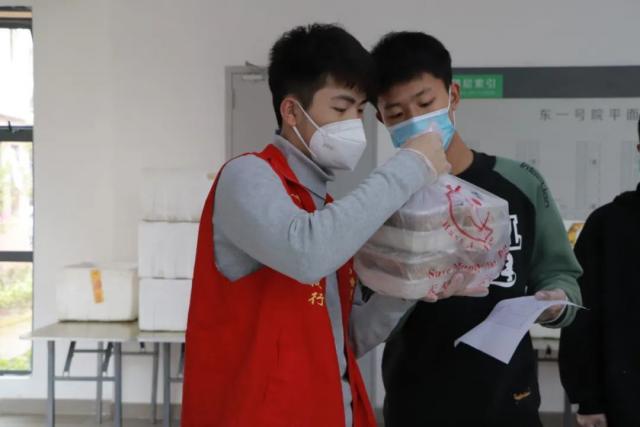 疫情防控期间,志愿者们积极行动,自愿为居寝观测同学们服务,给同学们送去饭菜、防疫物资等。