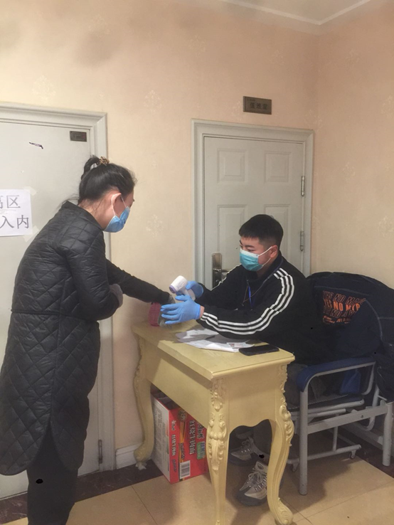 王紫纶同学,主动请缨逆行防控第一线 ,成为一名境外返乡人员集中隔离点的志愿者。他被安排到安保组,协助公安局和教育局的工作人员接待隔离人员的家属。