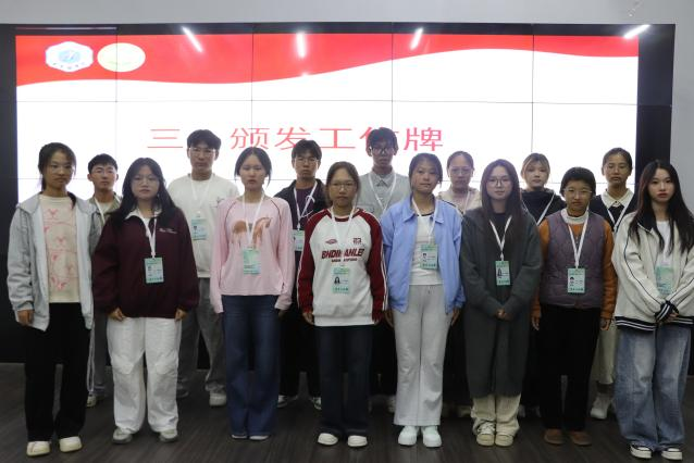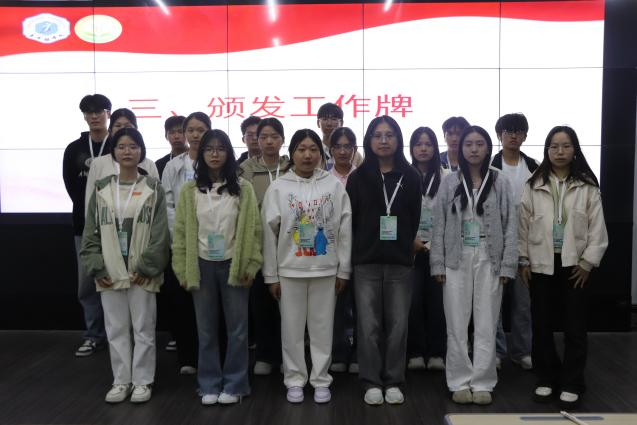 自我介绍结束后,主持人陈婷邀请各部门部长,向新生双手递发印有第二课堂管理服务中心标识的专属工作牌,新生双手接过并致谢,现场掌声阵阵。这一充满仪式感的环节,强化了新生的身份认同、归属感与责任感,为他们融入集体、参与后续工作筑牢基础,彰显了新集体的活力与凝聚力。