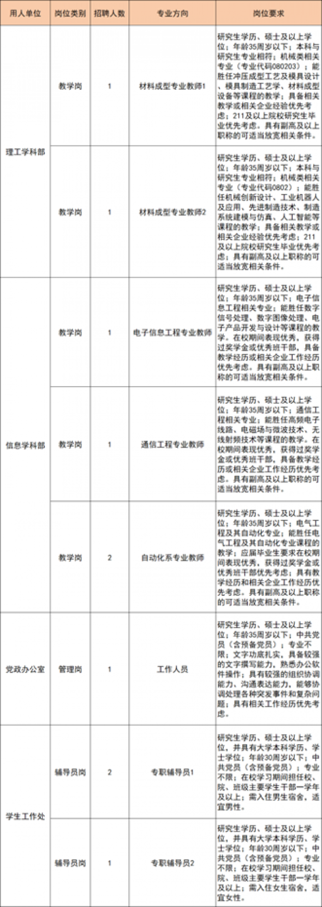 现根据学院教育事业发展的需要,经学院研究,现面向社会公开招聘以下岗位人员,现将有关事项公告如下: