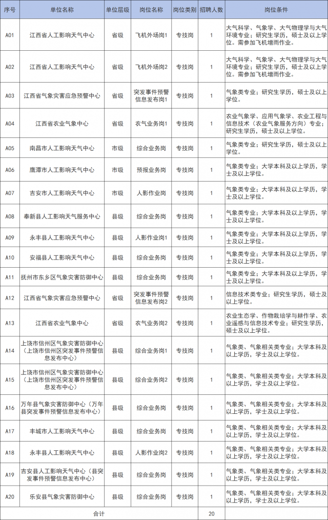 5.笔试、面试的考试时间、地点及各环节成绩将在江西省气象局网站公布,接受社会监督。指定时间未到者视为自动放弃。