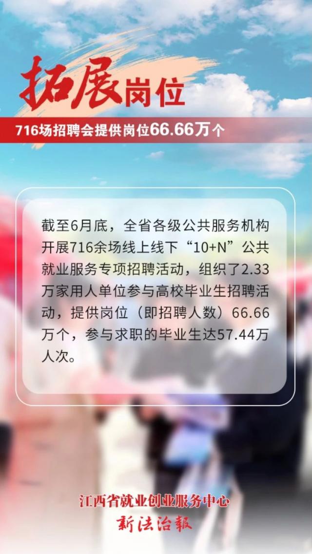 截至6月底,全省各级公共服务机构开展716余场线上线下“10+N”公共就业服务专项招聘活动,组织了2.33万家用人单位参与高校毕业生招聘活动,提供岗位(即招聘人数)66.66万个,参与求职的毕业生达57.44万人次。围绕我省重点产业链,分学科、分层次、分行业举办专场招聘会。省级公共就业服务机构联合地方和高校举办了14场线上线下就业招聘活动,组织了3369家用人单位,提供就业岗位12.89万个,参与求职人数4.57万人次。