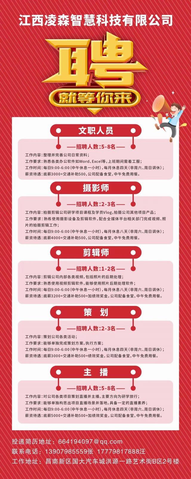 团团微就业,就业帮扶行动——江西凌森智慧科技有限公司招聘