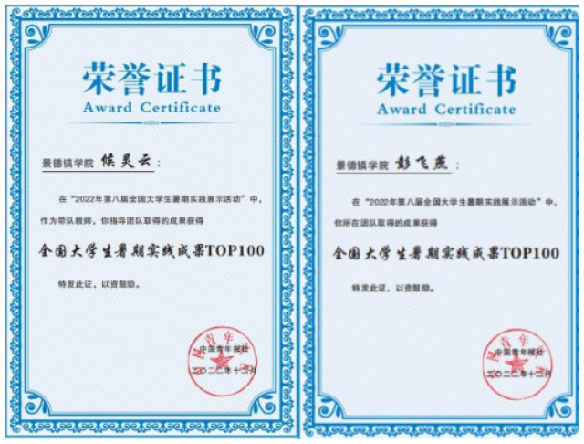 为深入挖掘和展示景德镇学院暑期实践中的优秀成果,充分发挥优秀实践团队的示范引领作用,校团委积极组织暑期社会实践团队参与全国大学生暑期实践展示活动,经校方推荐、团队自荐、网络展示等环节,由候灵云、方美林老师指导的“乡村振兴,‘邮’我行”社会实践调研报告获得第八届全国大学生暑期实践成果TOP100。