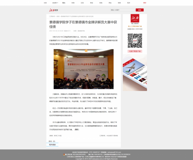 景德镇学子在景德镇市金牌讲解员大赛中获得佳绩