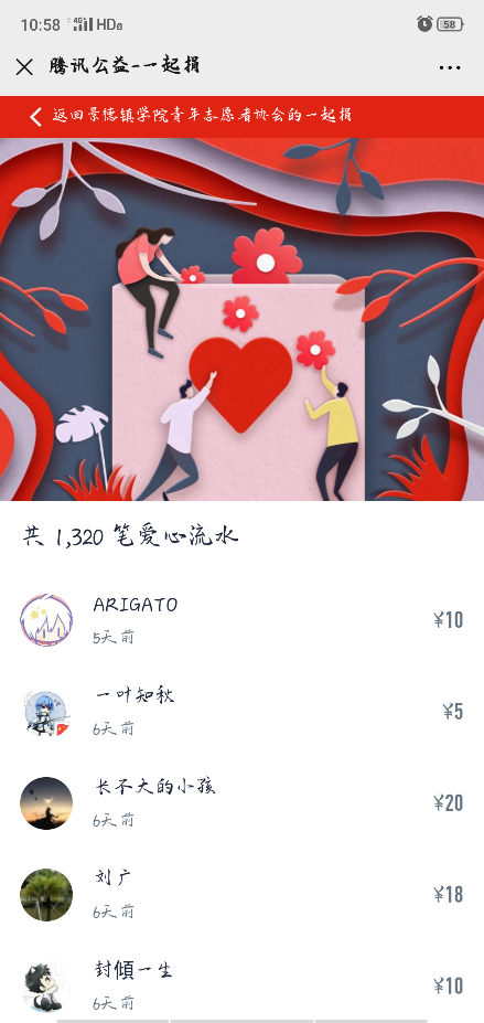 截止目前,共有1310名同学参与,募集资金12522元,款项将通过腾讯公益拨付江西省红十字基金会用于新型冠状病毒感染的肺炎救治工作。“一方有难,八方支援”,这汇集了景院学子爱心的款项,将为疫情防控贡献一份力量,和全国人民一起抗疫防疫,为景德镇学院加油,为武汉加油,为中国加油!
