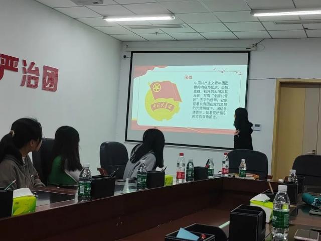 学生团工委主要负责人胡玉妍带领与会人员学习了团旗、团徽、团歌的相关知识及团员的责任与义务。负责人通过问答形式,引导组内成员互动探讨,加深大家对共青团标志的了解。
