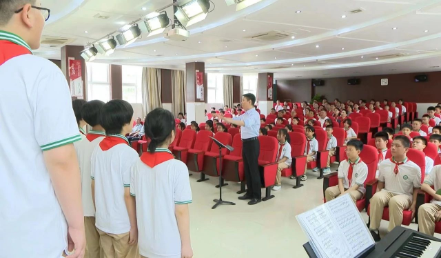 这天正逢市委书记刘锋,市委副书记吴隽,市人大常委会副主任、市委秘书长罗建国,副市长徐辉走访九中,给广大少年儿童致以节日的祝贺和诚挚的问候,向广大教育工作者致以崇高的敬意和衷心的感谢。刘锋一行认真聆听了我院邹杰群老师指导的合唱团汇报演出,飞扬的歌声、优美的旋律,令现场观众沉醉不已;刘锋一行还观看了我院手工社团指导老师罗茜的手工制作公开课,每个作品都构思巧妙、独具匠心,生动形象、栩栩如生,极具童真特色。