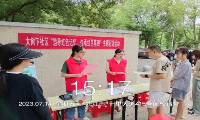 为深入领悟党的二十大精神,更好地感受党基层的工作氛围,在锻炼、提升自己各方面能力的同时,投身于社会基层体察我国国情,2023年暑假期间,21英语2班杨欣怡在江西省九江市浔阳区人民路街道大树下社区进行了为期六周的社工助理实习工作。其主要工作是协助社区正式员工们完成工作,如整理资料、录入数据以及进行各类有意义的社区活动等。