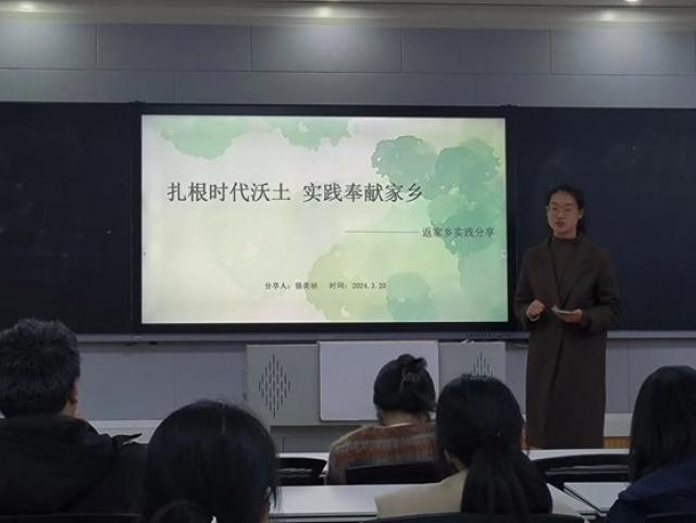 为深入学习贯彻习近平新时代中国特色社会主义思想和党的二十大精神,引领广大青年学生充分利用假期投身社会实践,促进大学生综合能力的提高,养成良好的学习生活习惯,立志做有理想、敢担当、能吃苦、肯奋斗的新时代好青年,我院大力开展了寒假社会实践活动。寒假期间,同学们积极参与,收获斐然。为了给同学们提供一个分享实践心得、相互交流学习的平台,激发同学参与社会实践的兴趣和热情,增进同学友谊与合作精神。教育学院团委于3月20日晚上七点在精品录播室举办寒假社会实践分享活动。本次共有四名同学分享了实践内容和感受。古之立大事者,不惟有超世之才,亦必有坚韧不拔之志。