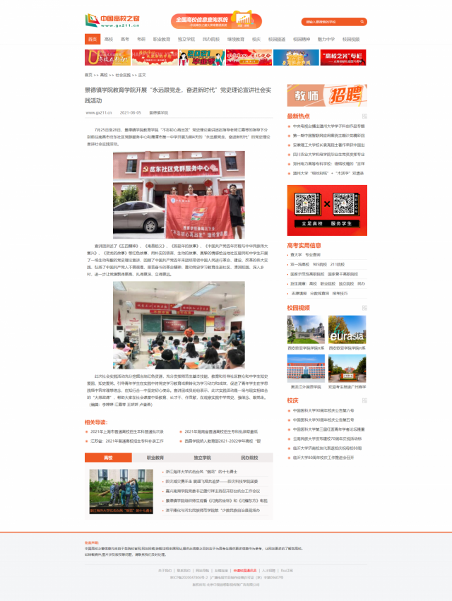 中国高校之窗:景德镇学院教育学院开展“永远跟党走,奋进新时代”党史理论宣讲社会实践活动