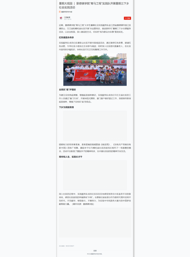 学习强国:暑期大观园 | 景德镇学院“青马工程”实践队开展暑期三下乡社会实践活动